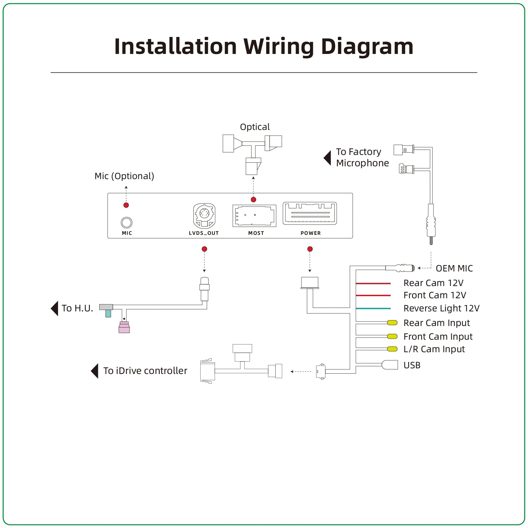 Designed for vehicles equipped with BMW CIC and the MOST fiber optic audio system, this interface integrates directly with the factory display, iDrive controller, and amplifier through the digital MOST network.
